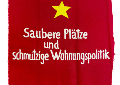 Fabric printed for the action‘ Clean Squares and Dirty Housing Policy, 1969. Rheinisches Archiv für Künstlernachlässe, photo Henning Krause