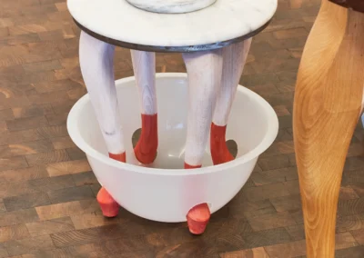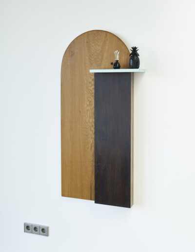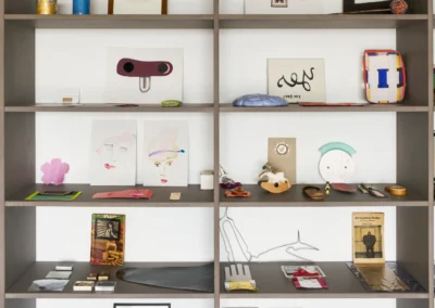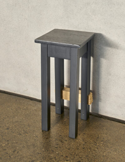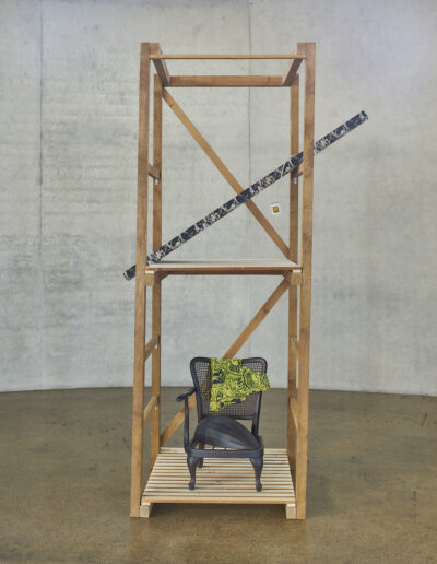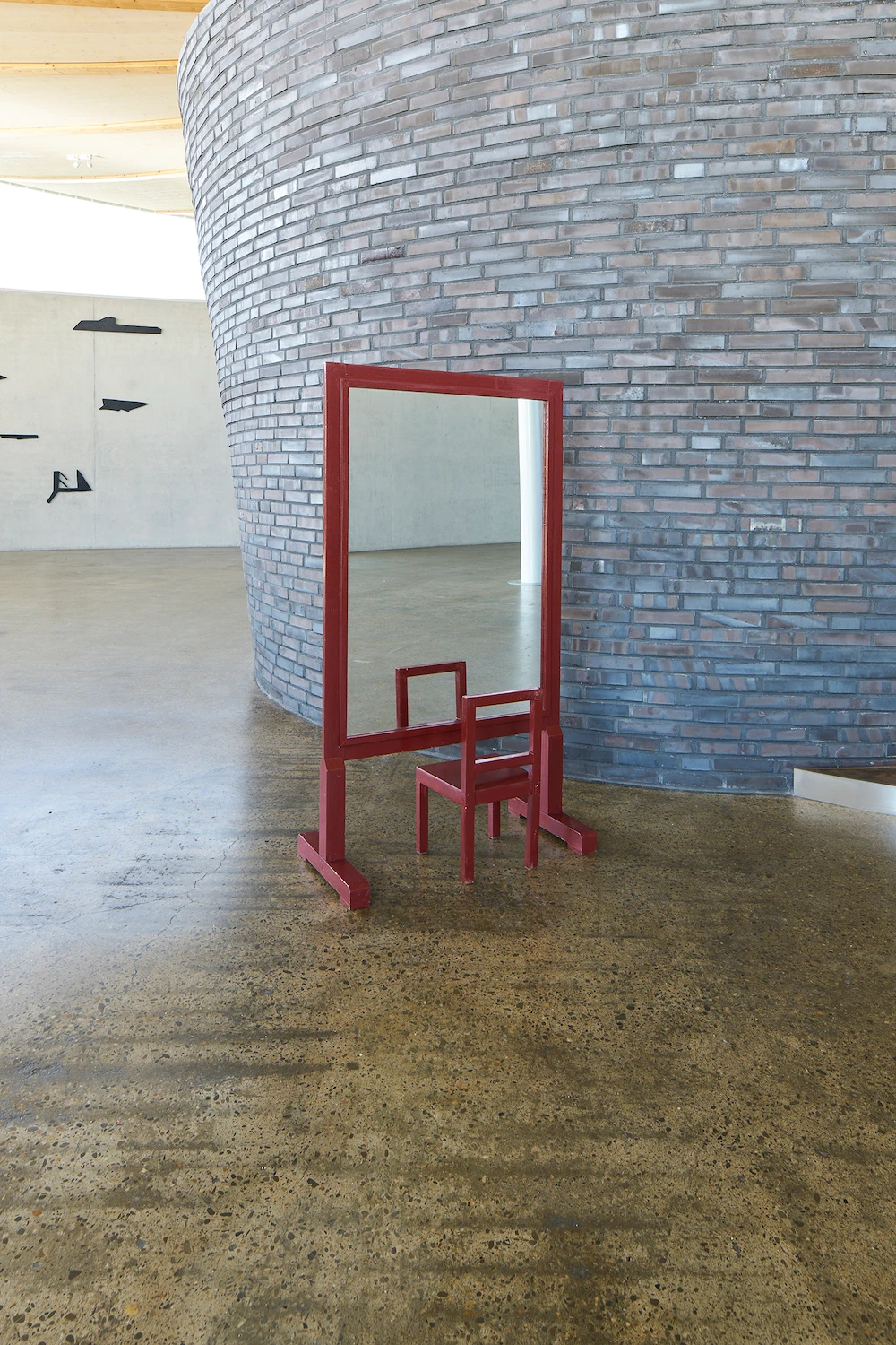 Betritt man Erinna Königs Ausstellung in der Skulpturenhalle, so sieht man sich in einer seltsam vertrauten Umgebung: Man erkennt Spiegel, Stuhl, Bettstatt, Gardine und andere Einrichtungsdinge; die Werke lehnen sich an Formate von Bildern und Plastik an. Weder handelt es sich um Malerei noch um Skulptur. Königs plastische Werke haben eine malerische Seite, und was malerisch erscheint, erweist sich als dinglich. Stets ist ein Gegenstand da, von dem aus die Künstlerin denkt und gestaltet.