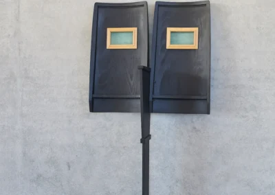 In der Ausstellung treten wiederkehrende Elemente auf, drei Säulen, drei Kalligraphien und drei Masken, die aufgrund ihrer unterschiedlichen Ausformung über den Raum hinweg miteinander sprechen. Gemeinsam ist ihnen, dass sie zu Teilen auf vorgefundenen Dingen basieren. Diese Teile sind so in das Werk eingearbeitet, dass der Ausgangspunkt kaum mehr erkenntlich ist. Erklären tun diese Bezüge nichts, es bleibt auch nicht beim Faktischen. König beobachtet die Welt, ist von manchen Gegenständen getroffen und versucht sie weiterzudenken – die Erfahrung zu objektivieren und zugleich ihr Geheimnis zu schützen. Sie definiert die Elemente eines Werks genau und sucht für die Herstellung ungewöhnliche technische Verfahren. Das Spektrum der Materialien ist weit und wiederholt sich kaum.