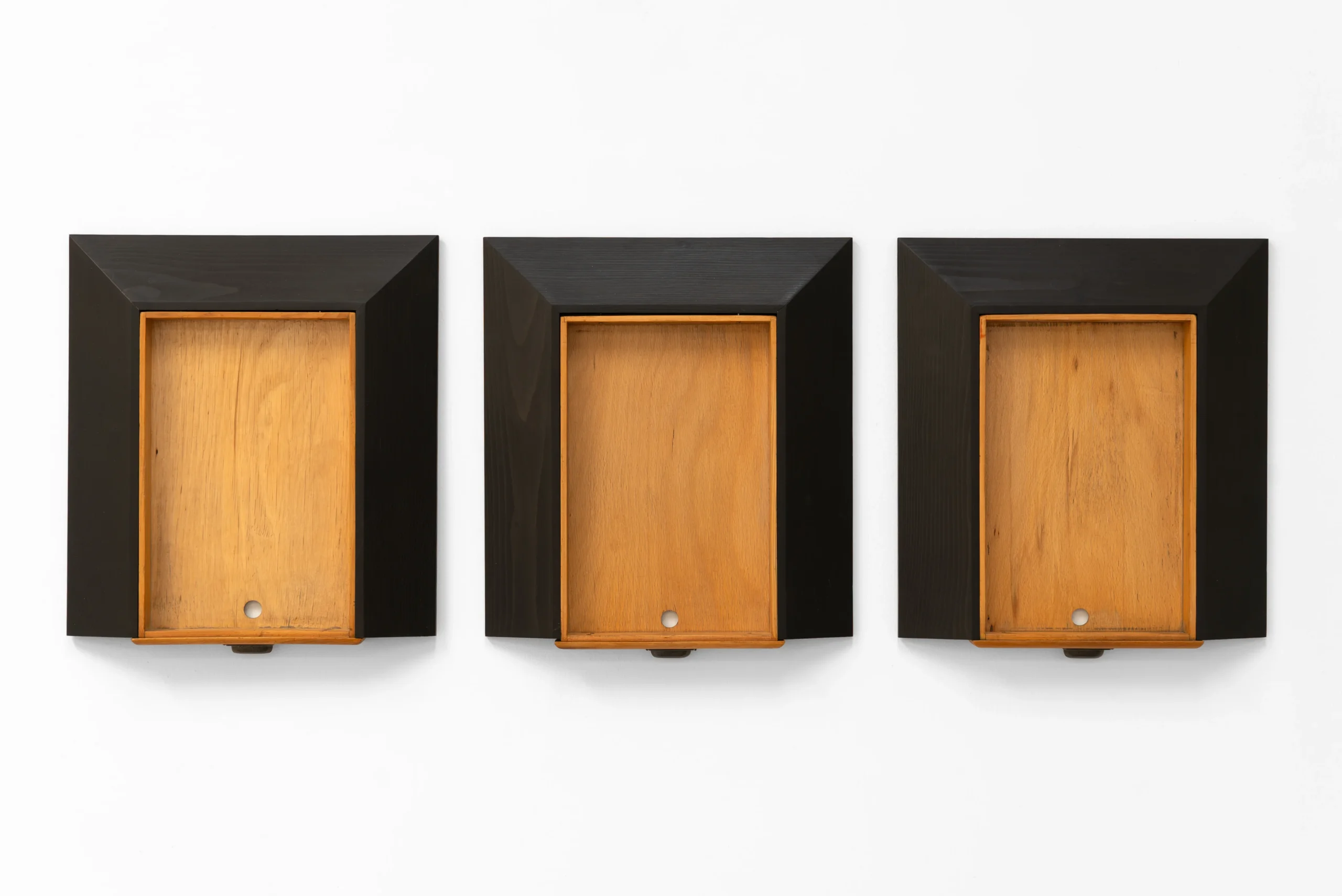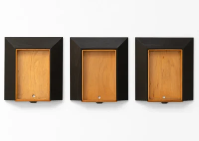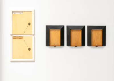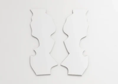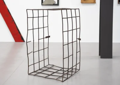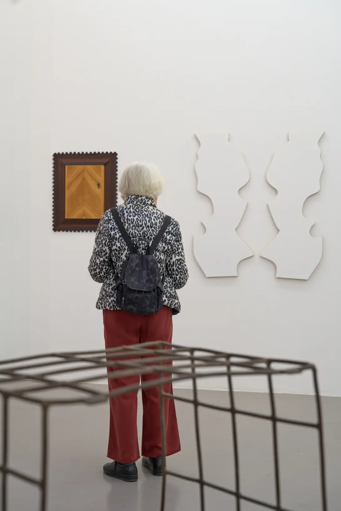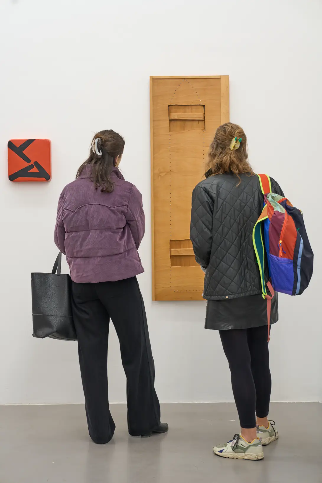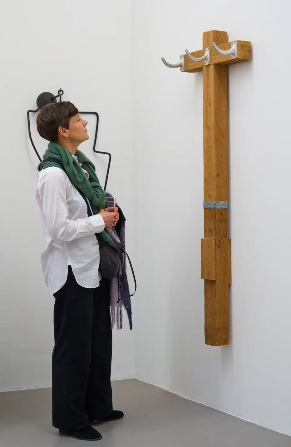 With playful easy she weaves narratives from seemingly random points of departure. A shadow, plywood, scaffolding plank, brick, asbestos cladding, household furniture, her own body or an ironing board, with a twist they tell a new tale. Nothing is left to chance, every minute detail carefully considered. Aesthetic values weigh as much as symbolic references, cut angles, choices of colour or paint, artisanal proficiency or a piece’s provenance.