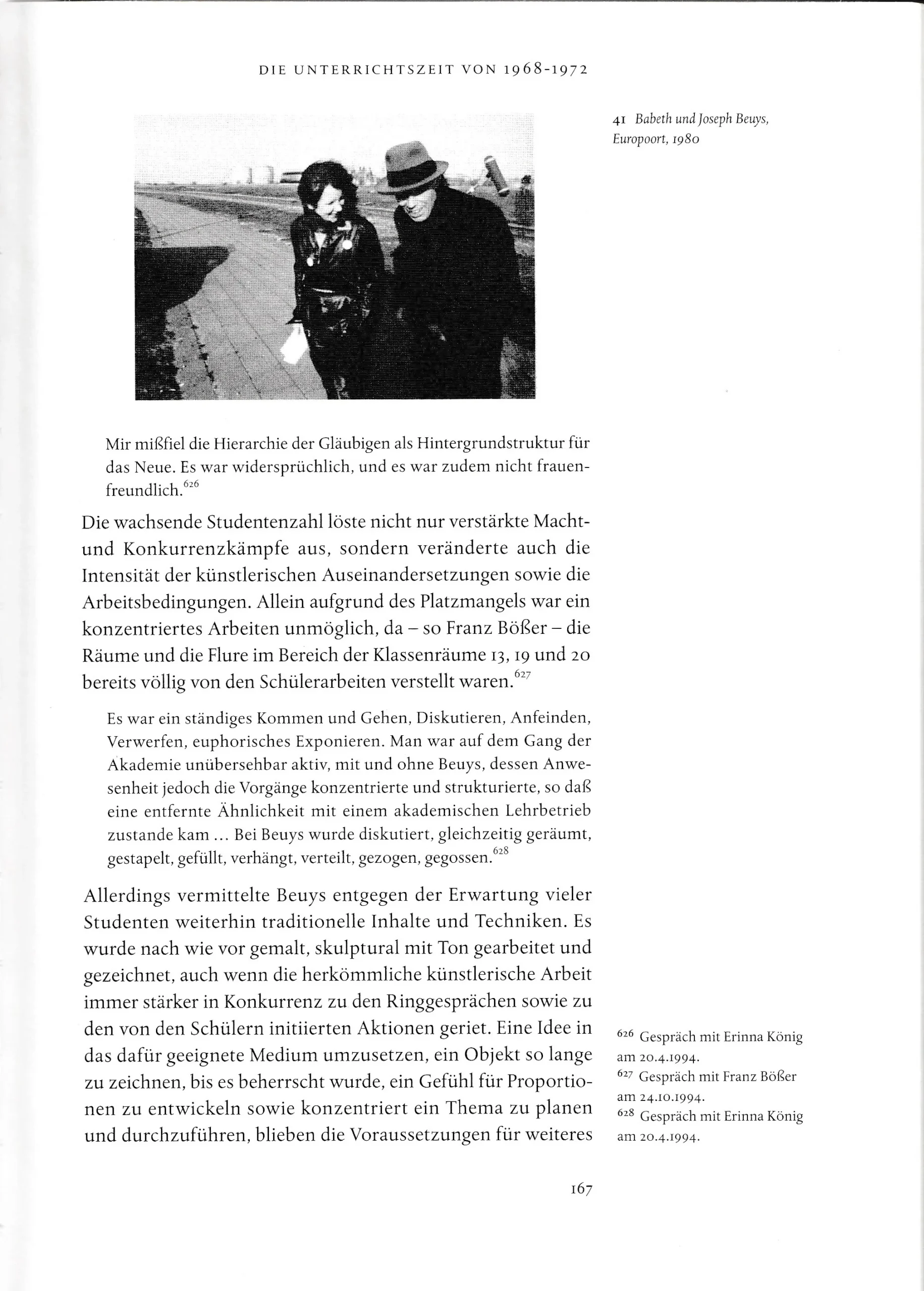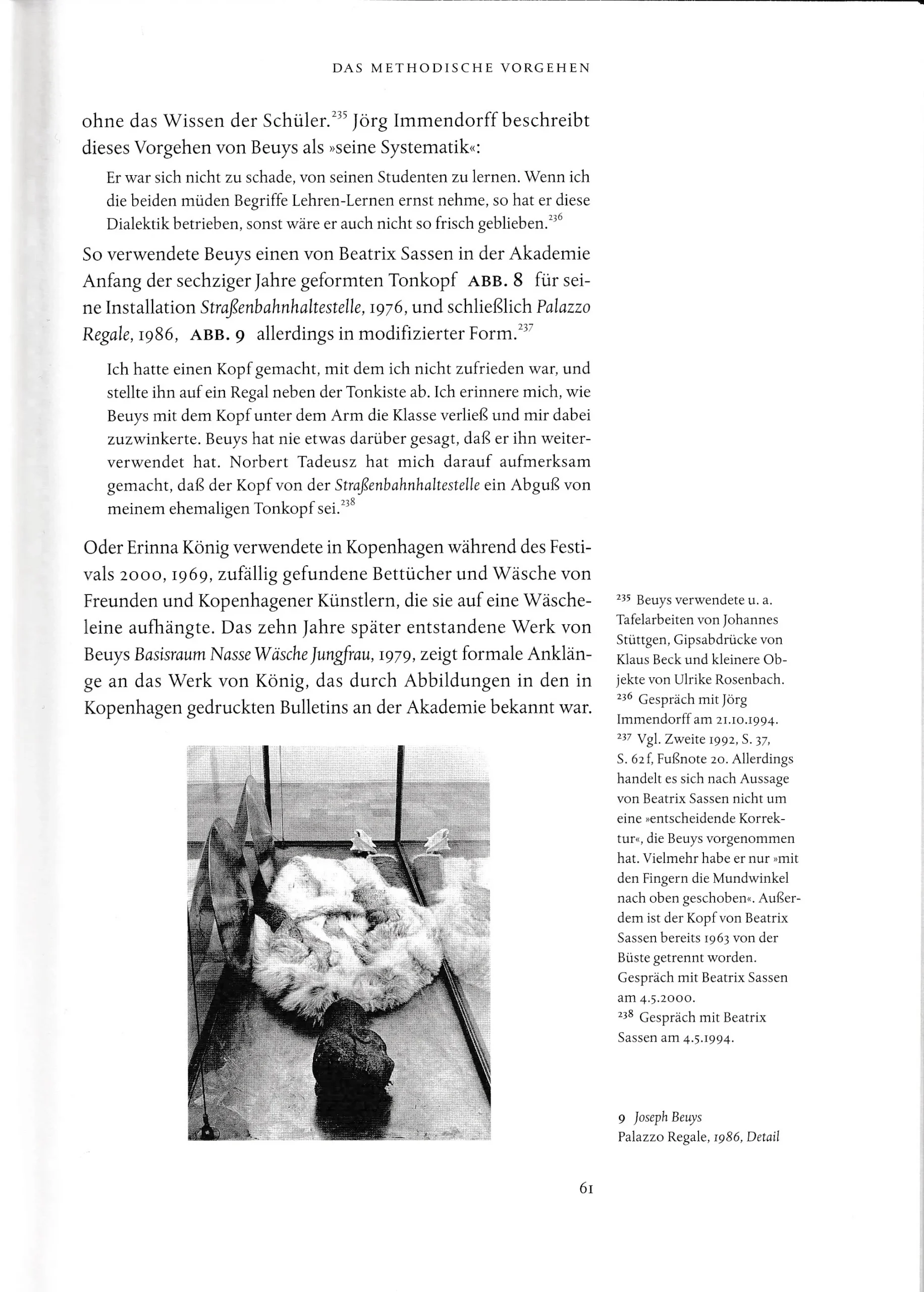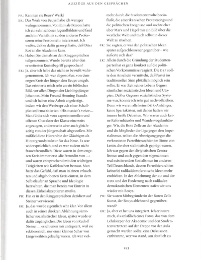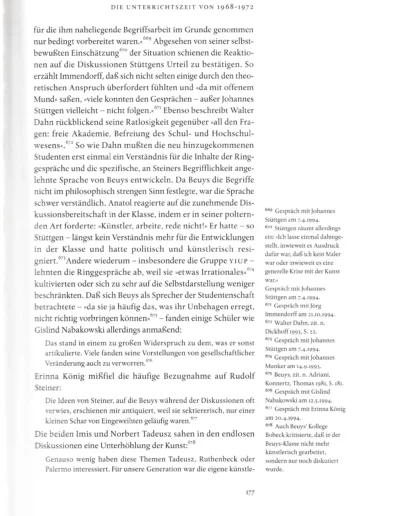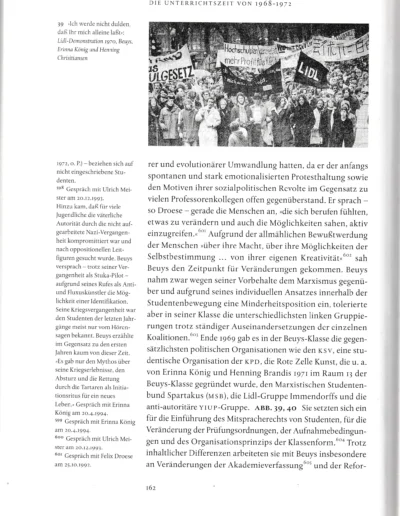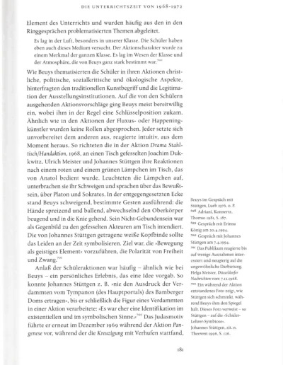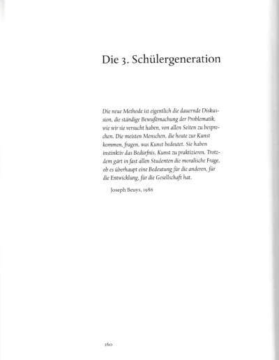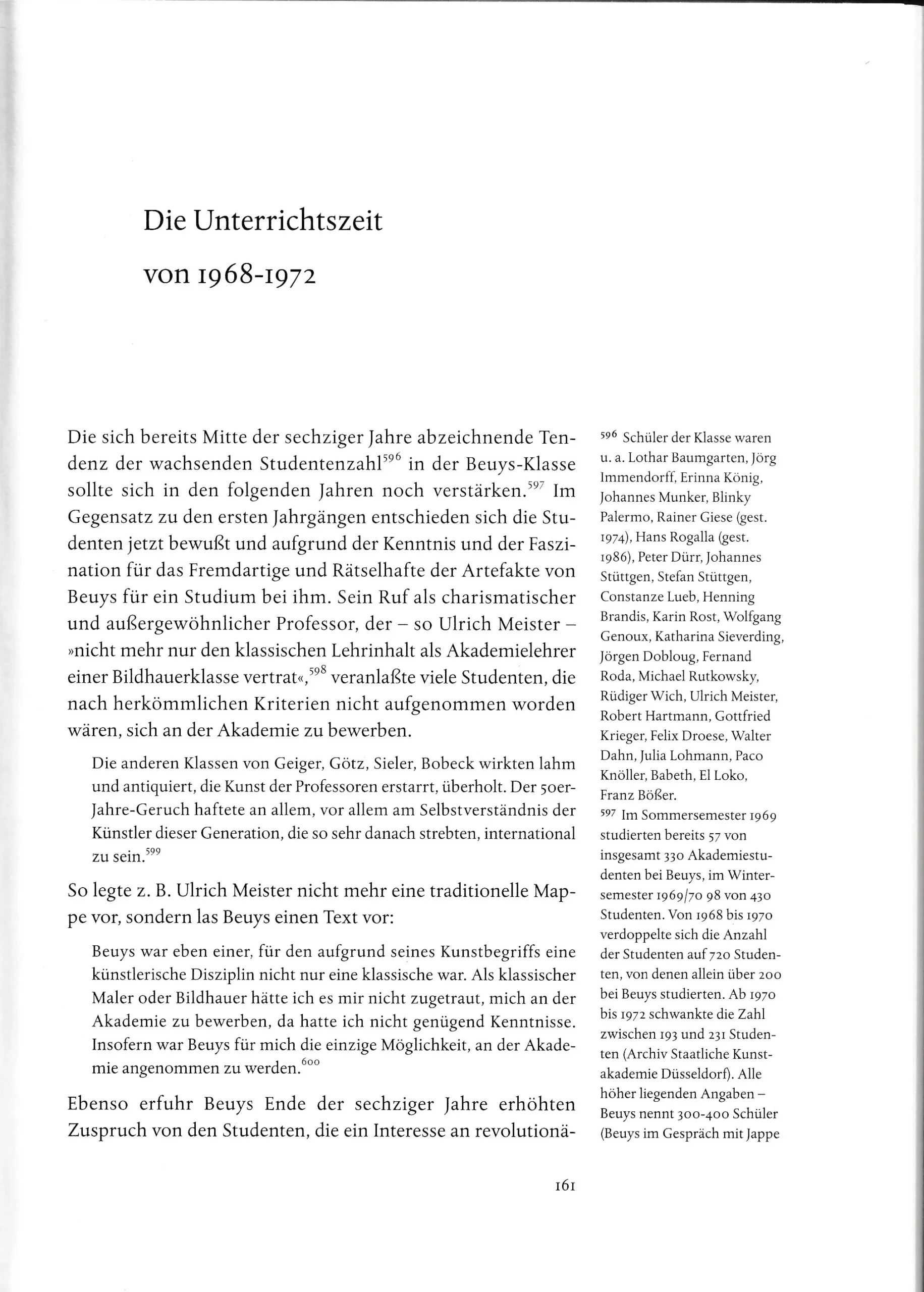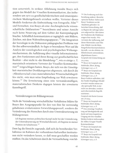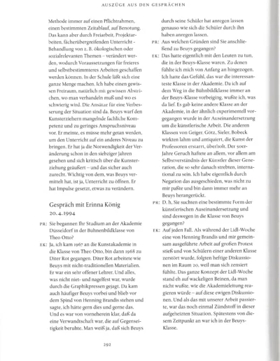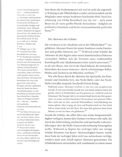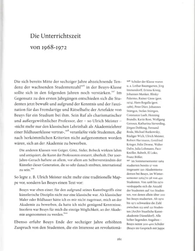 In diesem Buch wird zum ersten Ml die Wirkungsgeschichte der Akademietätigkeit von Joseph Beuys aus der Sicht seiner ehemaligen Schüler beschrieben. 1961 als Professor für Bildhauerei an die Staatliche Kunstakademie Düsseldorf berufen, 1972 aufgrund der Auseinandersetzungen um hochschulpolitische Fragen entlassen, gibt Joseph Beuys (1921-1986) als einer der bedeutendsten, aber auch umstrittensten Akademielehrer nach 1945. In seinem Bemühen steht Beuys in der Tradition avantgardistischer Künstler, die sich engagiert für eine auf Gesellschaftsveränderung drängende ästhetische Erziehung eingesetzt haben. Der Erfolg seines Unterrichts schlug sich einerseits in der großen Anzahl der Studenten nieder, andererseits in der großen Vielfalt der künstlerischen und pädagogisch-vermittelnden Positionen innerhalb seiner Schülerschaft. Mit dieser Publikation werden die Erfahrungen und Reflexionen sowie die Erinnerungen ehemaliger Schüler festgehalten. Eine Auswahl der transkribierten Interviews befindet sich im Anhang.