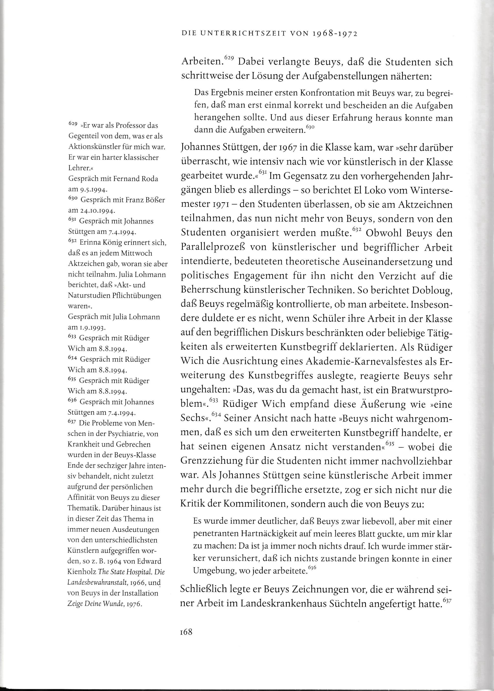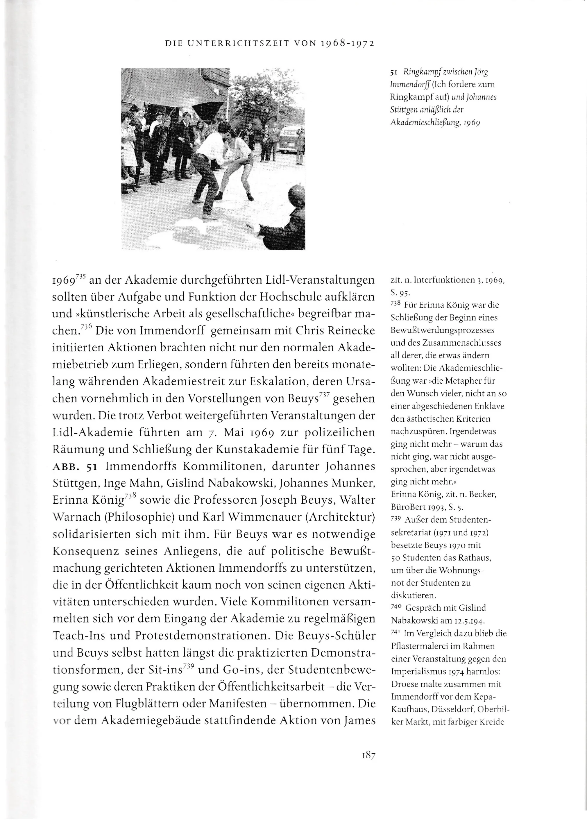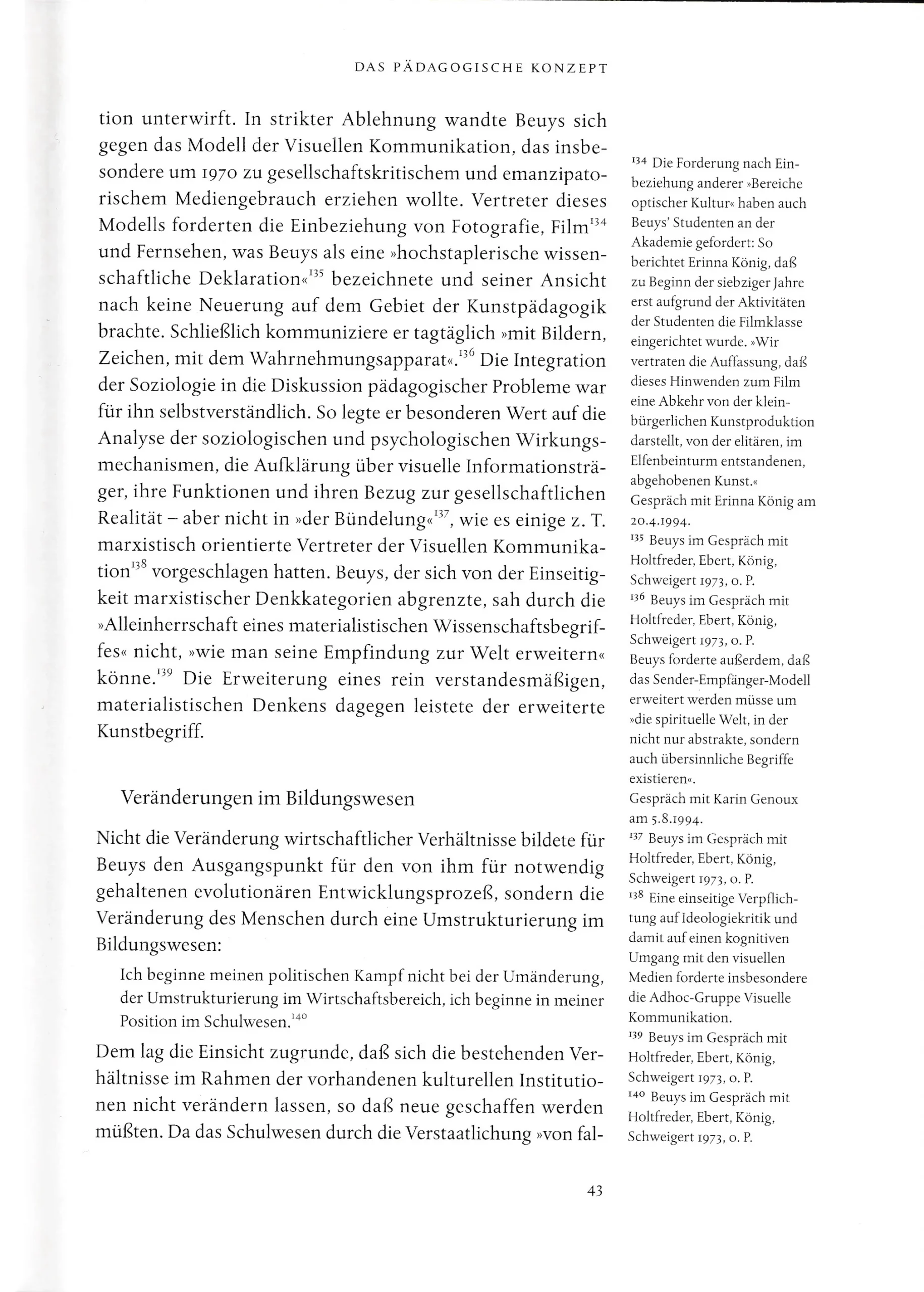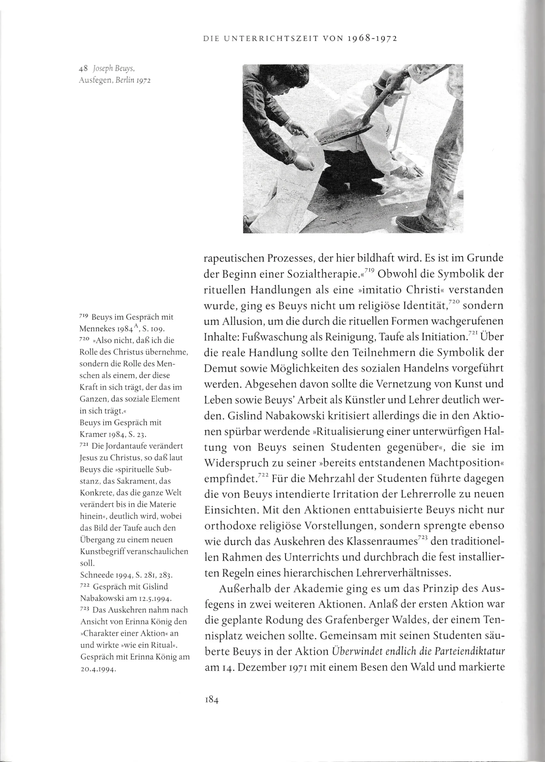 In diesem Buch wird zum ersten Ml die Wirkungsgeschichte der Akademietätigkeit von Joseph Beuys aus der Sicht seiner ehemaligen Schüler beschrieben. 1961 als Professor für Bildhauerei an die Staatliche Kunstakademie Düsseldorf berufen, 1972 aufgrund der Auseinandersetzungen um hochschulpolitische Fragen entlassen, gibt Joseph Beuys (1921-1986) als einer der bedeutendsten, aber auch umstrittensten Akademielehrer nach 1945. In seinem Bemühen steht Beuys in der Tradition avantgardistischer Künstler, die sich engagiert für eine auf Gesellschaftsveränderung drängende ästhetische Erziehung eingesetzt haben. Der Erfolg seines Unterrichts schlug sich einerseits in der großen Anzahl der Studenten nieder, andererseits in der großen Vielfalt der künstlerischen und pädagogisch-vermittelnden Positionen innerhalb seiner Schülerschaft. Mit dieser Publikation werden die Erfahrungen und Reflexionen sowie die Erinnerungen ehemaliger Schüler festgehalten. Eine Auswahl der transkribierten Interviews befindet sich im Anhang.