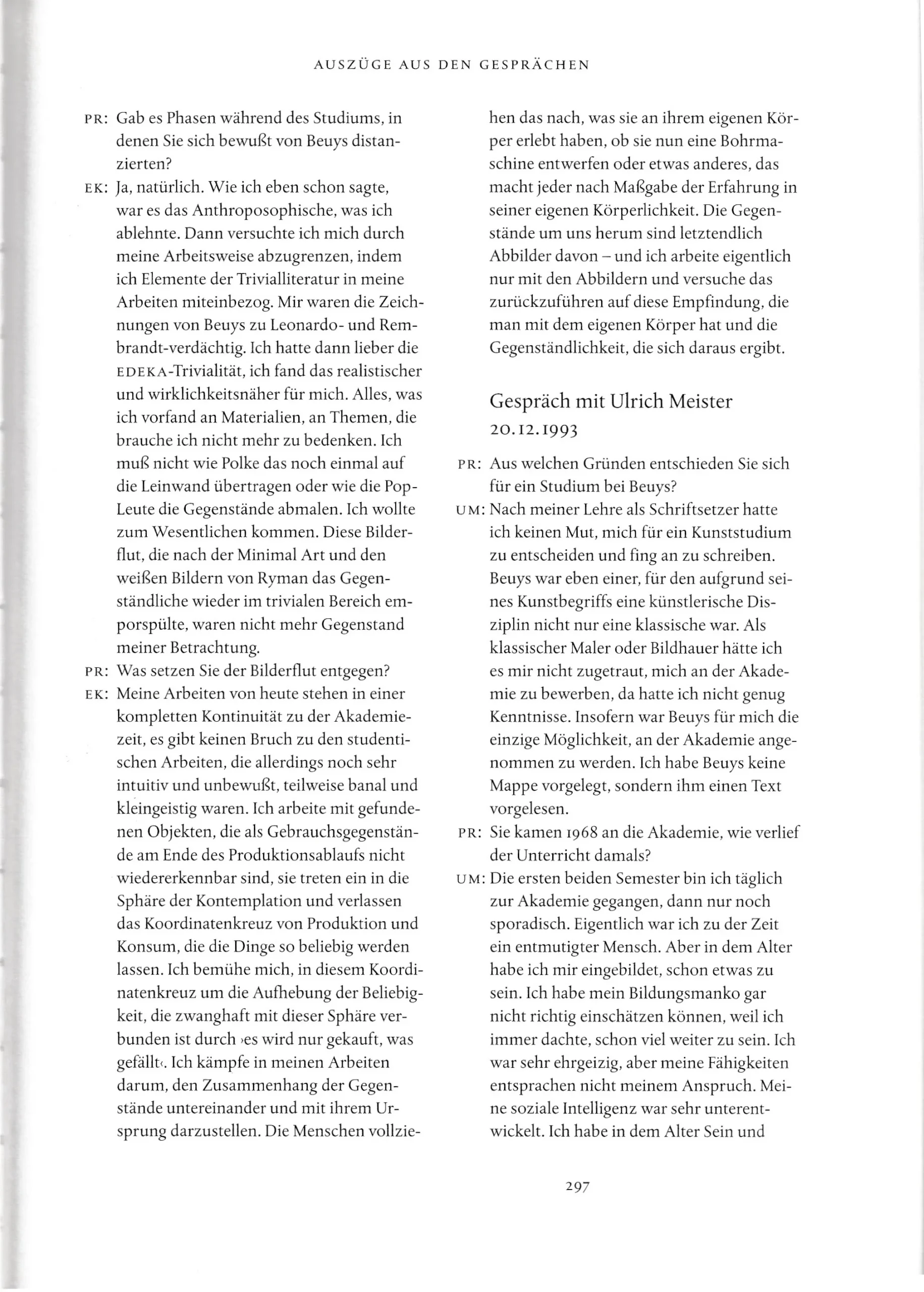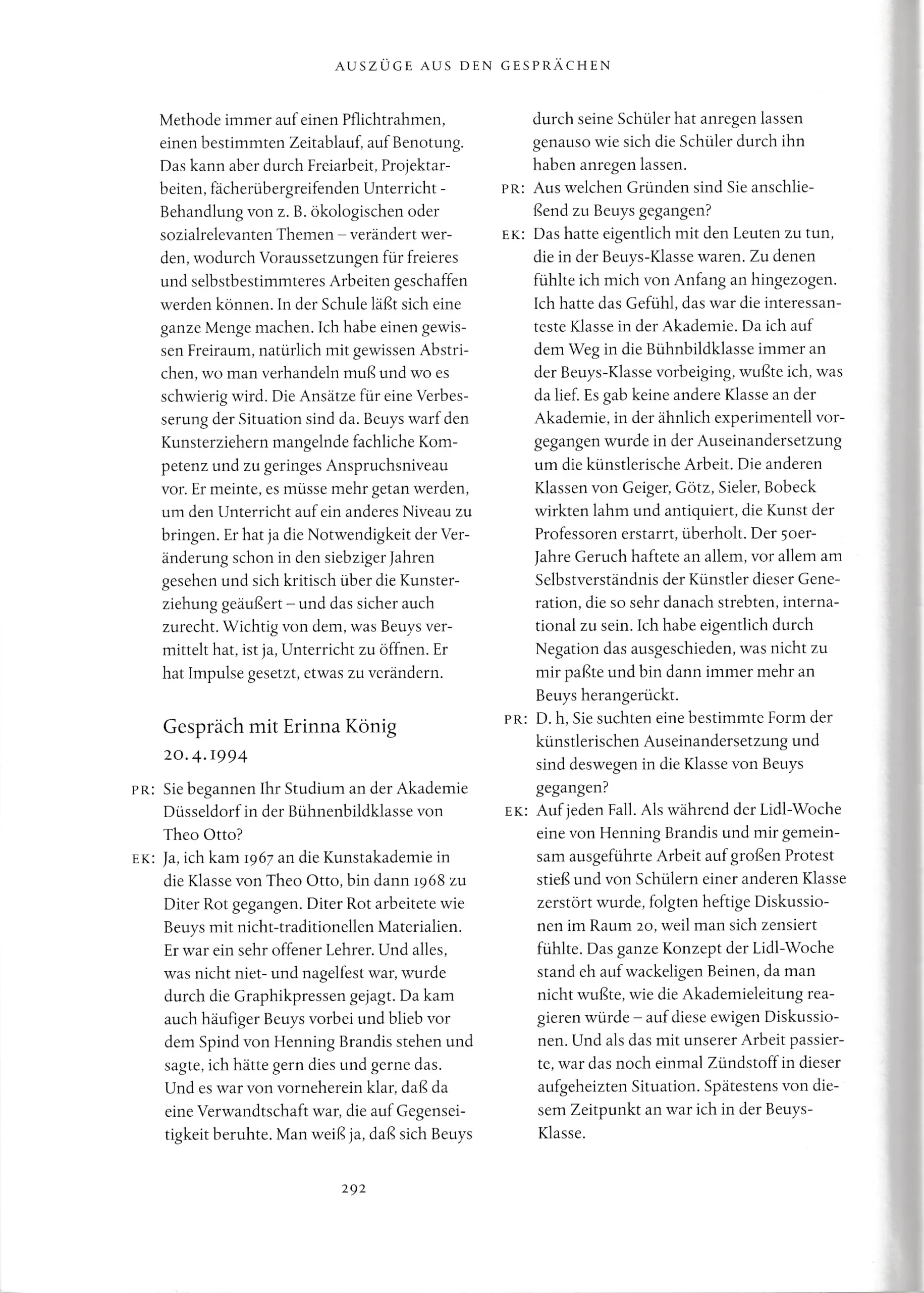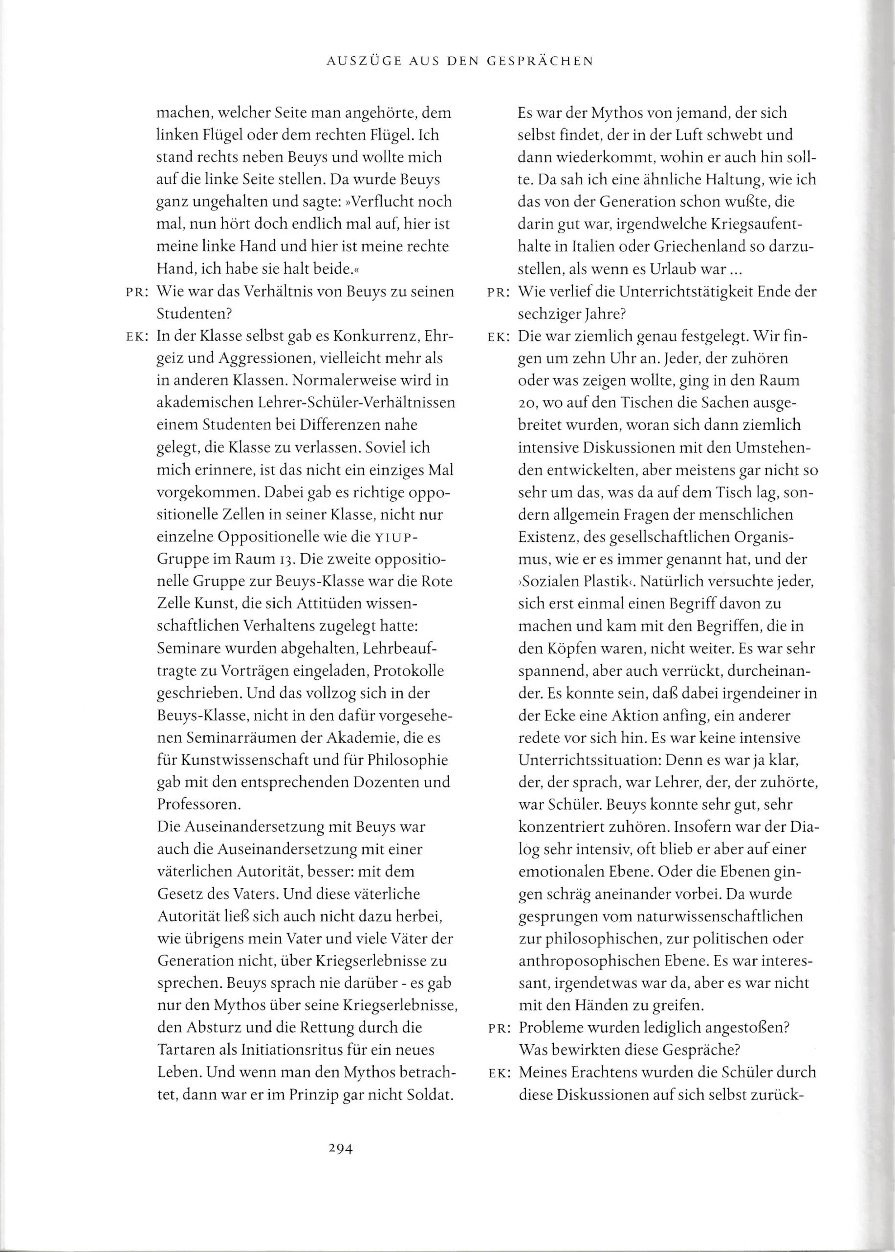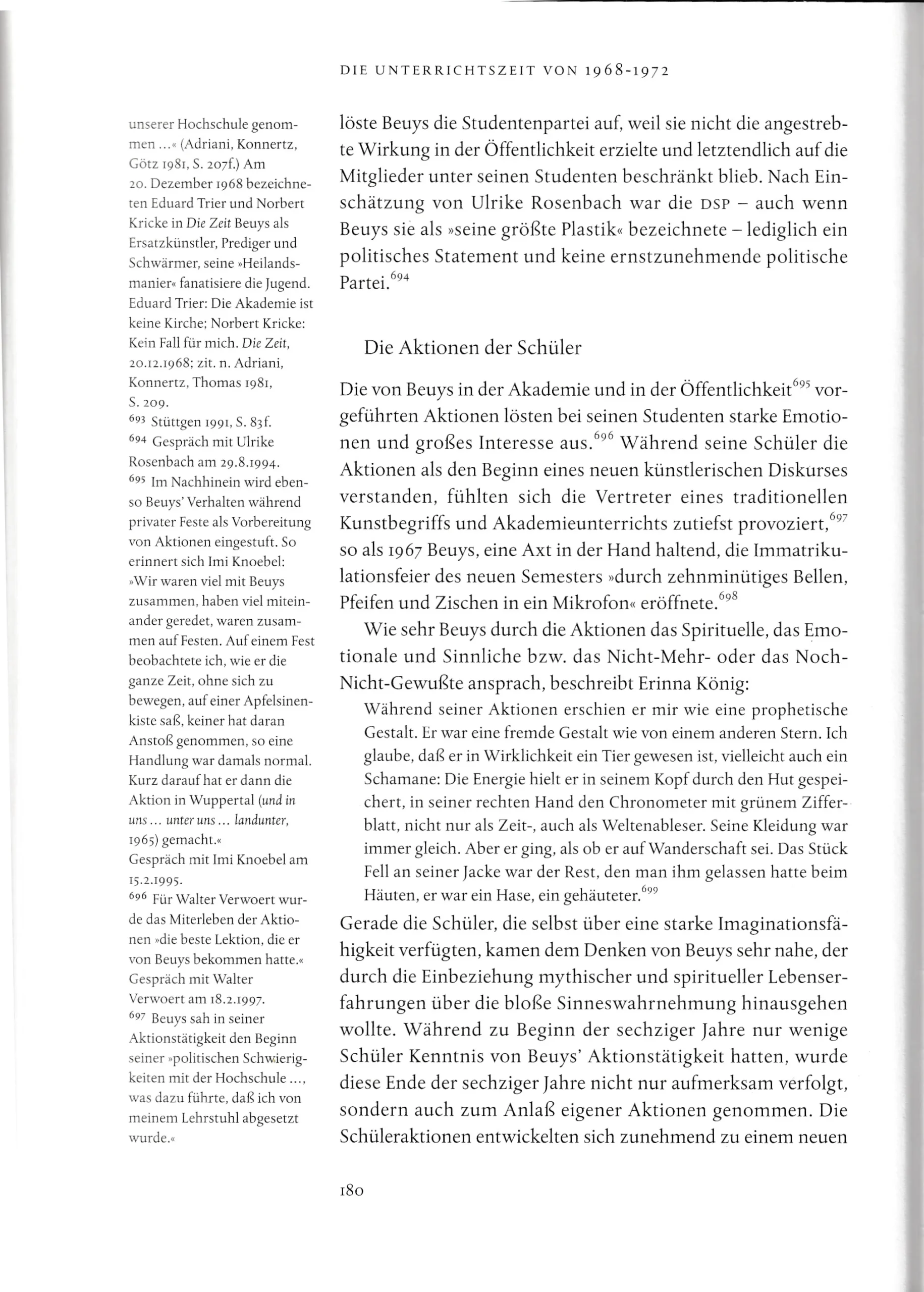 In diesem Buch wird zum ersten Ml die Wirkungsgeschichte der Akademietätigkeit von Joseph Beuys aus der Sicht seiner ehemaligen Schüler beschrieben. 1961 als Professor für Bildhauerei an die Staatliche Kunstakademie Düsseldorf berufen, 1972 aufgrund der Auseinandersetzungen um hochschulpolitische Fragen entlassen, gibt Joseph Beuys (1921-1986) als einer der bedeutendsten, aber auch umstrittensten Akademielehrer nach 1945. In seinem Bemühen steht Beuys in der Tradition avantgardistischer Künstler, die sich engagiert für eine auf Gesellschaftsveränderung drängende ästhetische Erziehung eingesetzt haben. Der Erfolg seines Unterrichts schlug sich einerseits in der großen Anzahl der Studenten nieder, andererseits in der großen Vielfalt der künstlerischen und pädagogisch-vermittelnden Positionen innerhalb seiner Schülerschaft. Mit dieser Publikation werden die Erfahrungen und Reflexionen sowie die Erinnerungen ehemaliger Schüler festgehalten. Eine Auswahl der transkribierten Interviews befindet sich im Anhang.