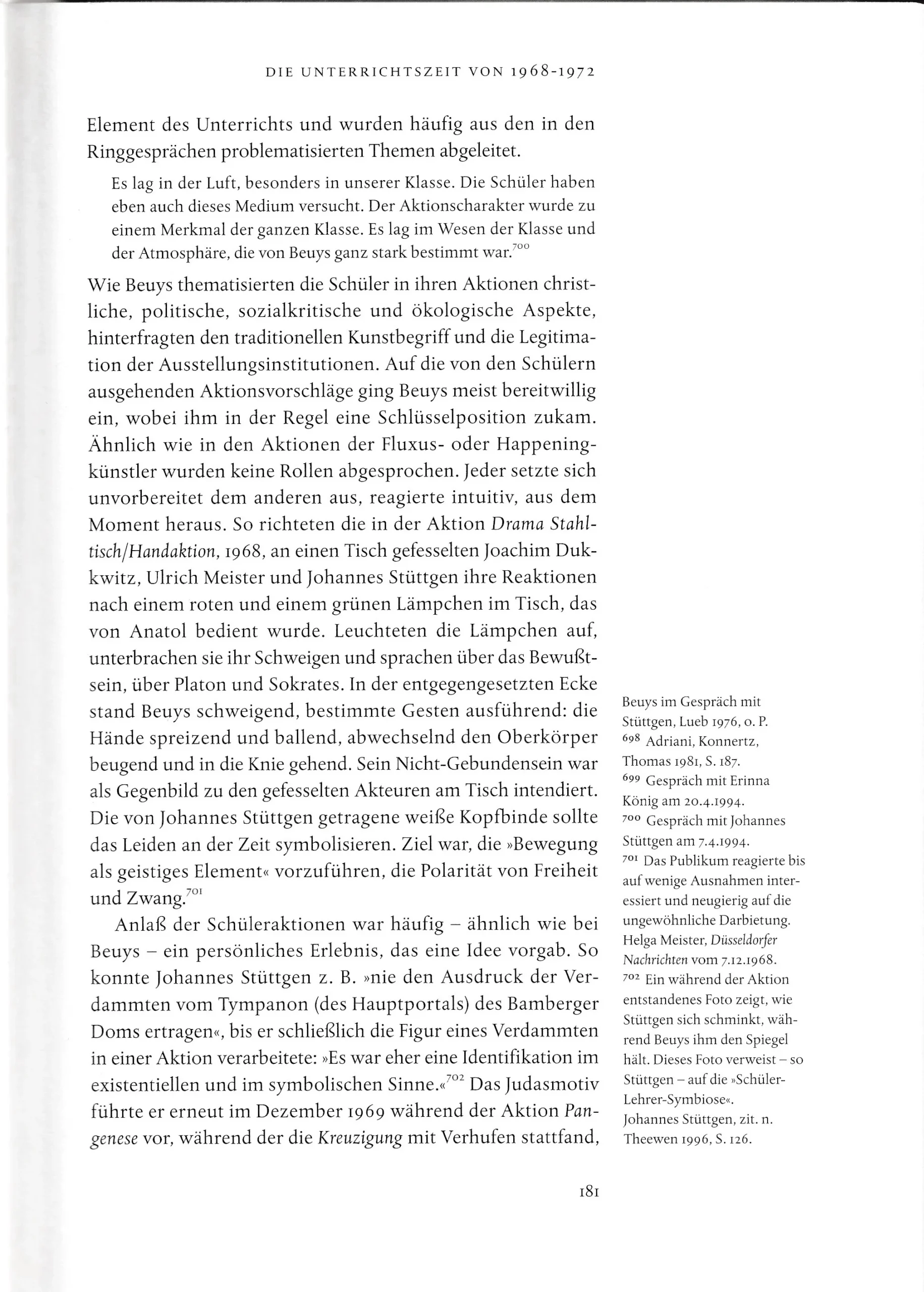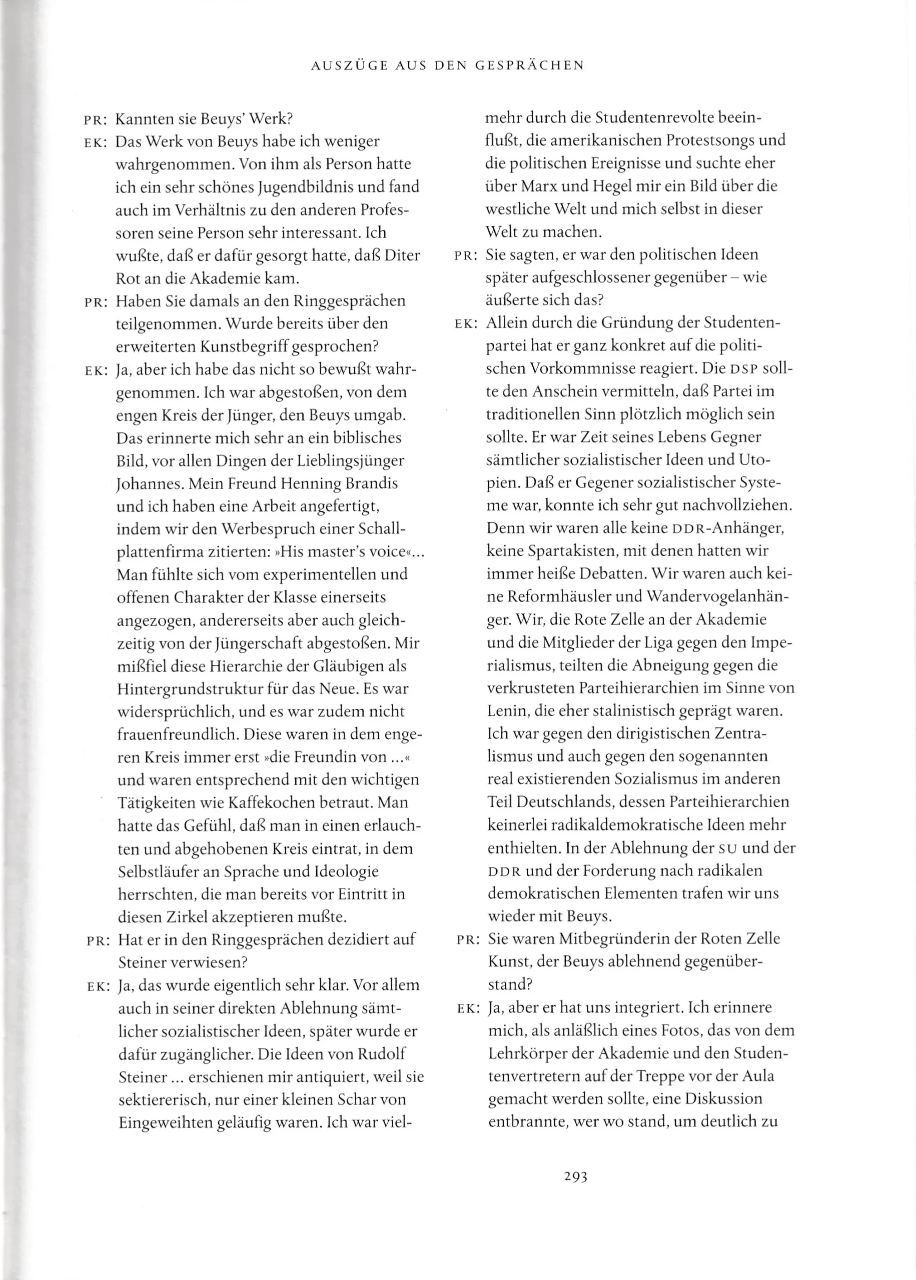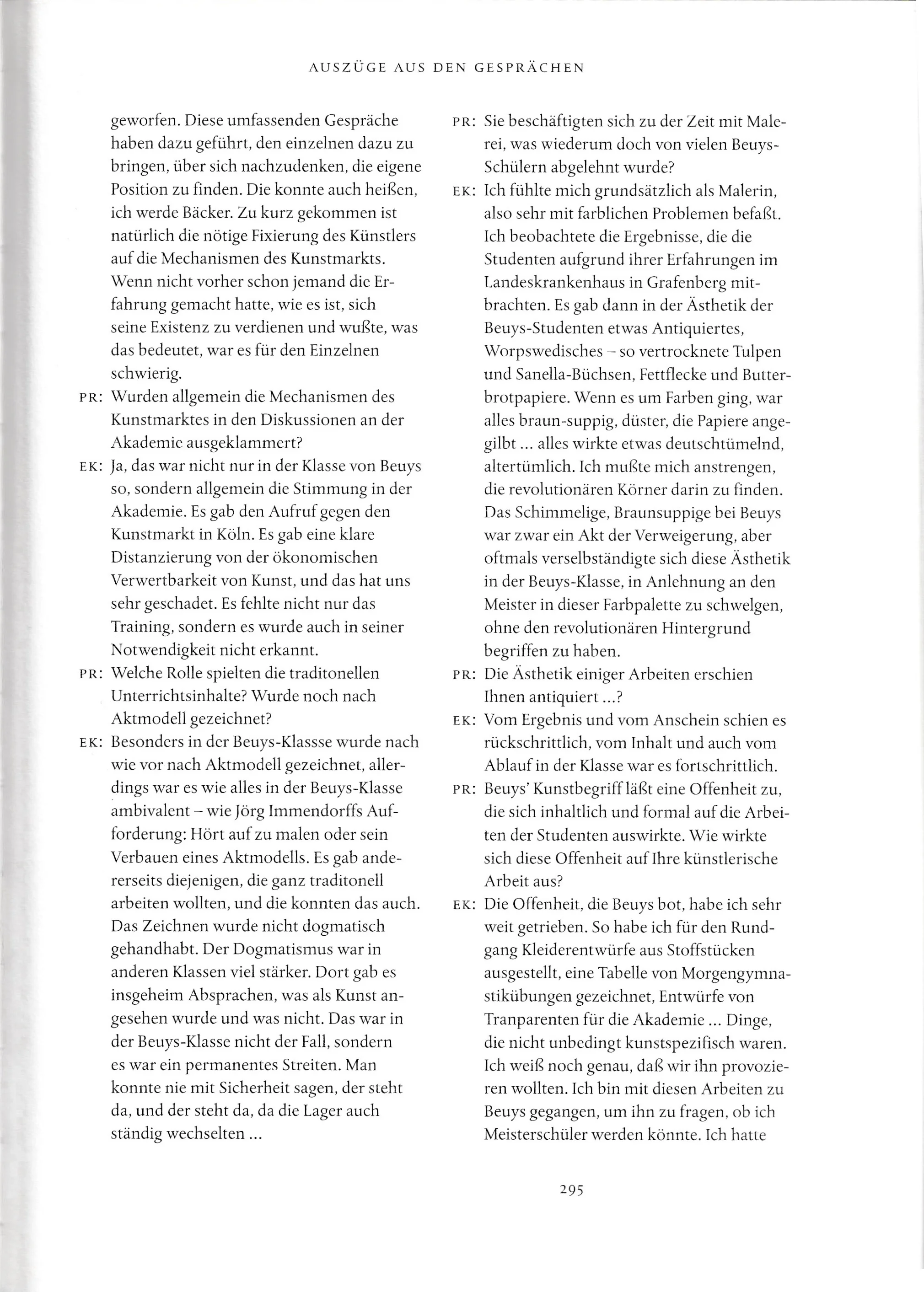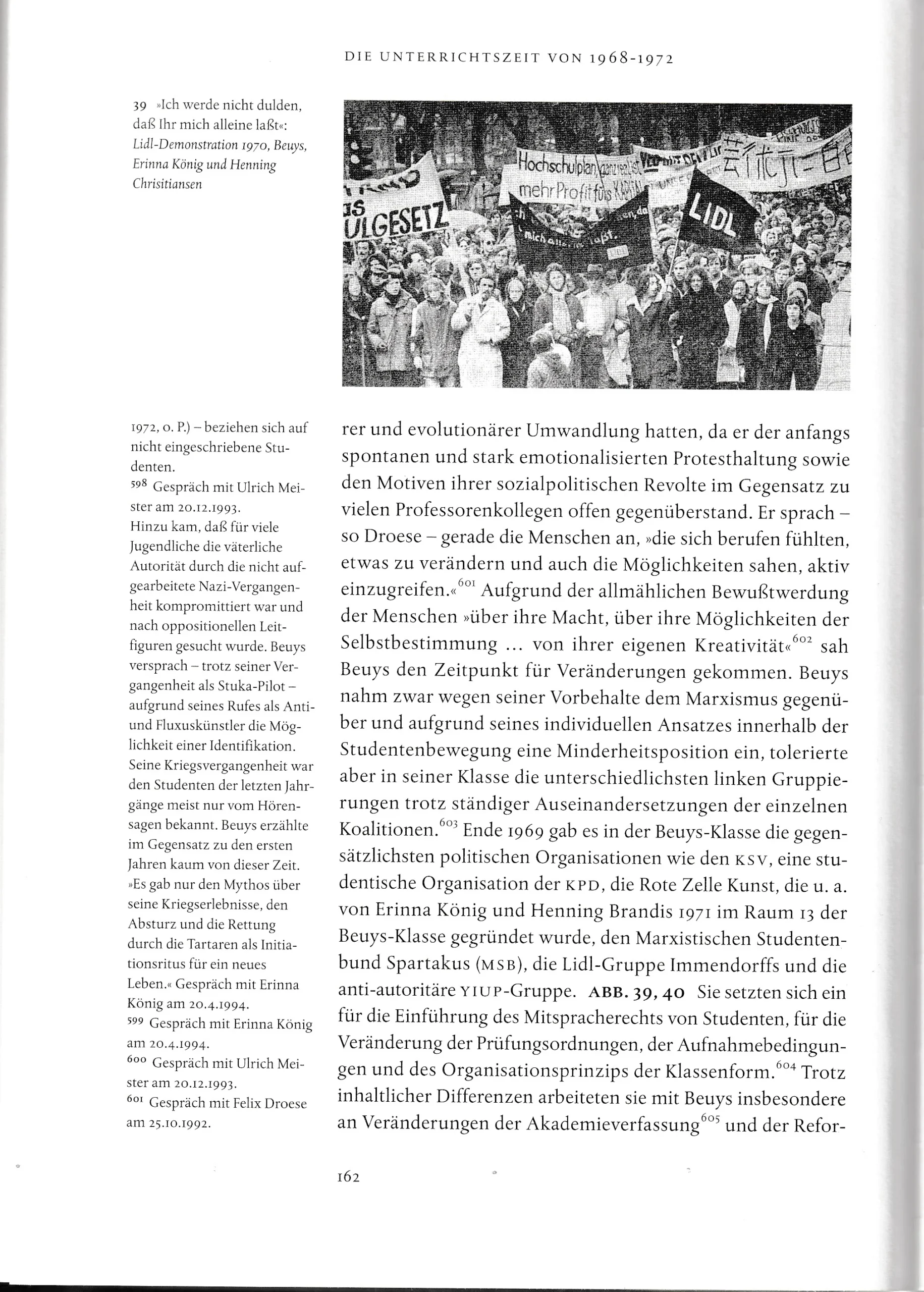 In diesem Buch wird zum ersten Ml die Wirkungsgeschichte der Akademietätigkeit von Joseph Beuys aus der Sicht seiner ehemaligen Schüler beschrieben. 1961 als Professor für Bildhauerei an die Staatliche Kunstakademie Düsseldorf berufen, 1972 aufgrund der Auseinandersetzungen um hochschulpolitische Fragen entlassen, gibt Joseph Beuys (1921-1986) als einer der bedeutendsten, aber auch umstrittensten Akademielehrer nach 1945. In seinem Bemühen steht Beuys in der Tradition avantgardistischer Künstler, die sich engagiert für eine auf Gesellschaftsveränderung drängende ästhetische Erziehung eingesetzt haben. Der Erfolg seines Unterrichts schlug sich einerseits in der großen Anzahl der Studenten nieder, andererseits in der großen Vielfalt der künstlerischen und pädagogisch-vermittelnden Positionen innerhalb seiner Schülerschaft. Mit dieser Publikation werden die Erfahrungen und Reflexionen sowie die Erinnerungen ehemaliger Schüler festgehalten. Eine Auswahl der transkribierten Interviews befindet sich im Anhang.