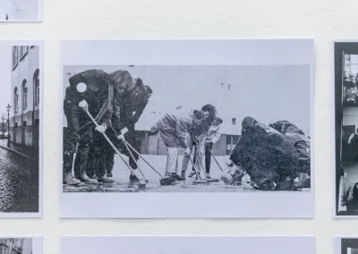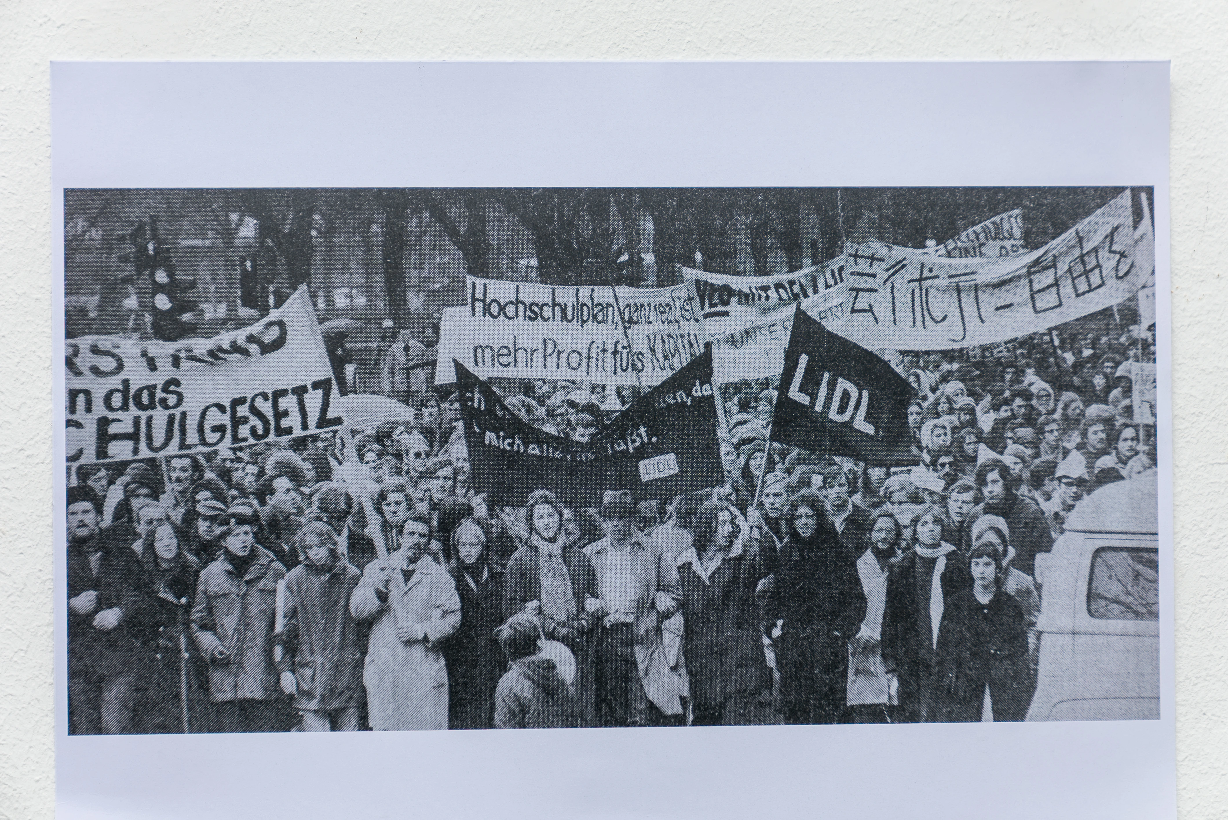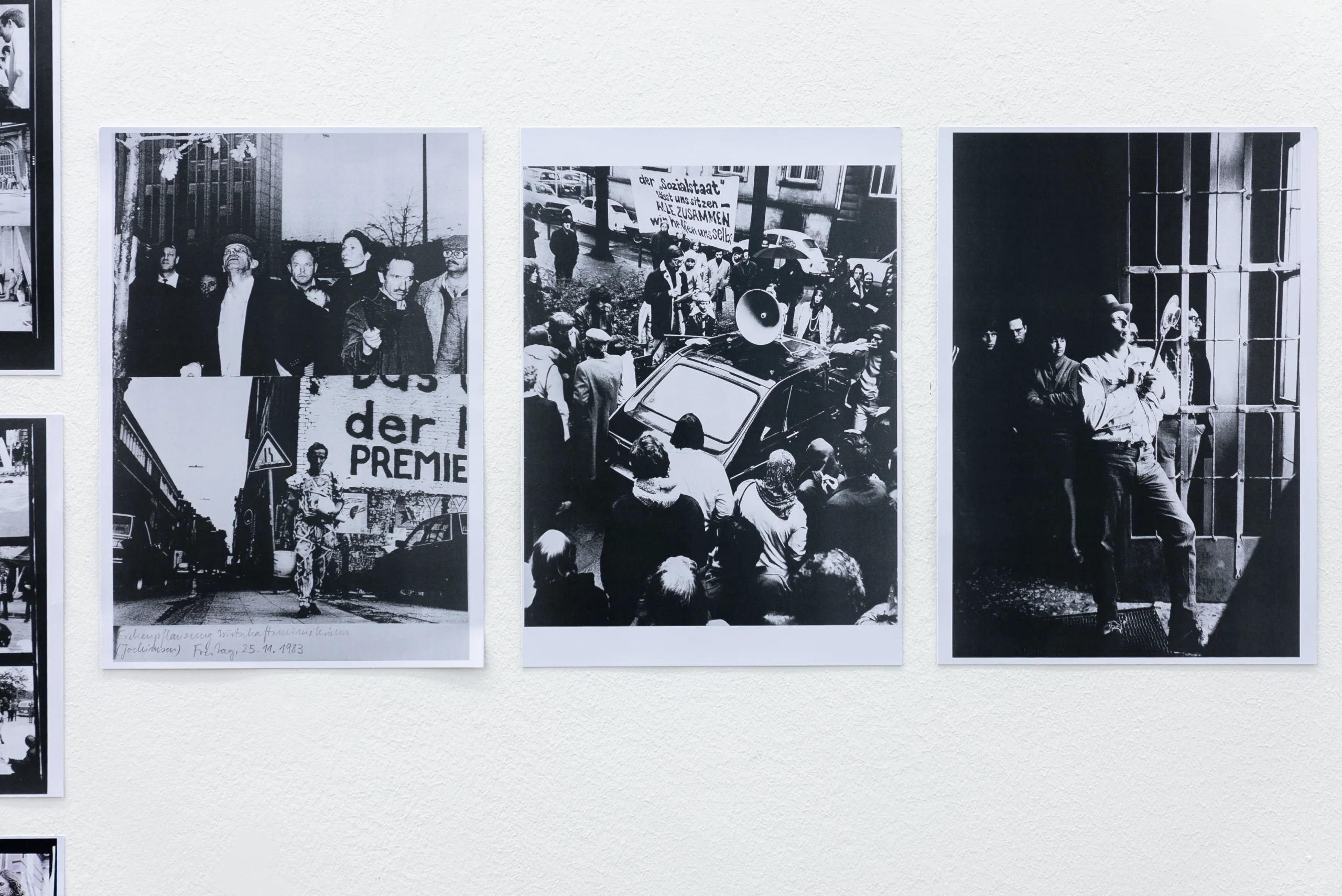 Eine Photodokumentation aus den Archiven Erinna Königs zeigt Momente aus ihrer Studentenzeit als Meisterschülerin Joseph Beuys’ im sozialen Umfeld der Kunstakademie Düsseldorf 1967-1976. Als aktive Mitstreiter der ‘68 Studentengeneration brachten Erinna König und Kollegen Kunst auf die Straße, organisierten “Aktionen”, zu erkämpften sich ein Studentenparlament, zu dem Erinna König als erste Präsidentin gewählt wurde.