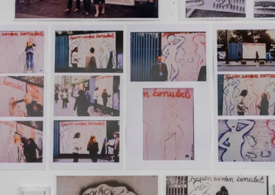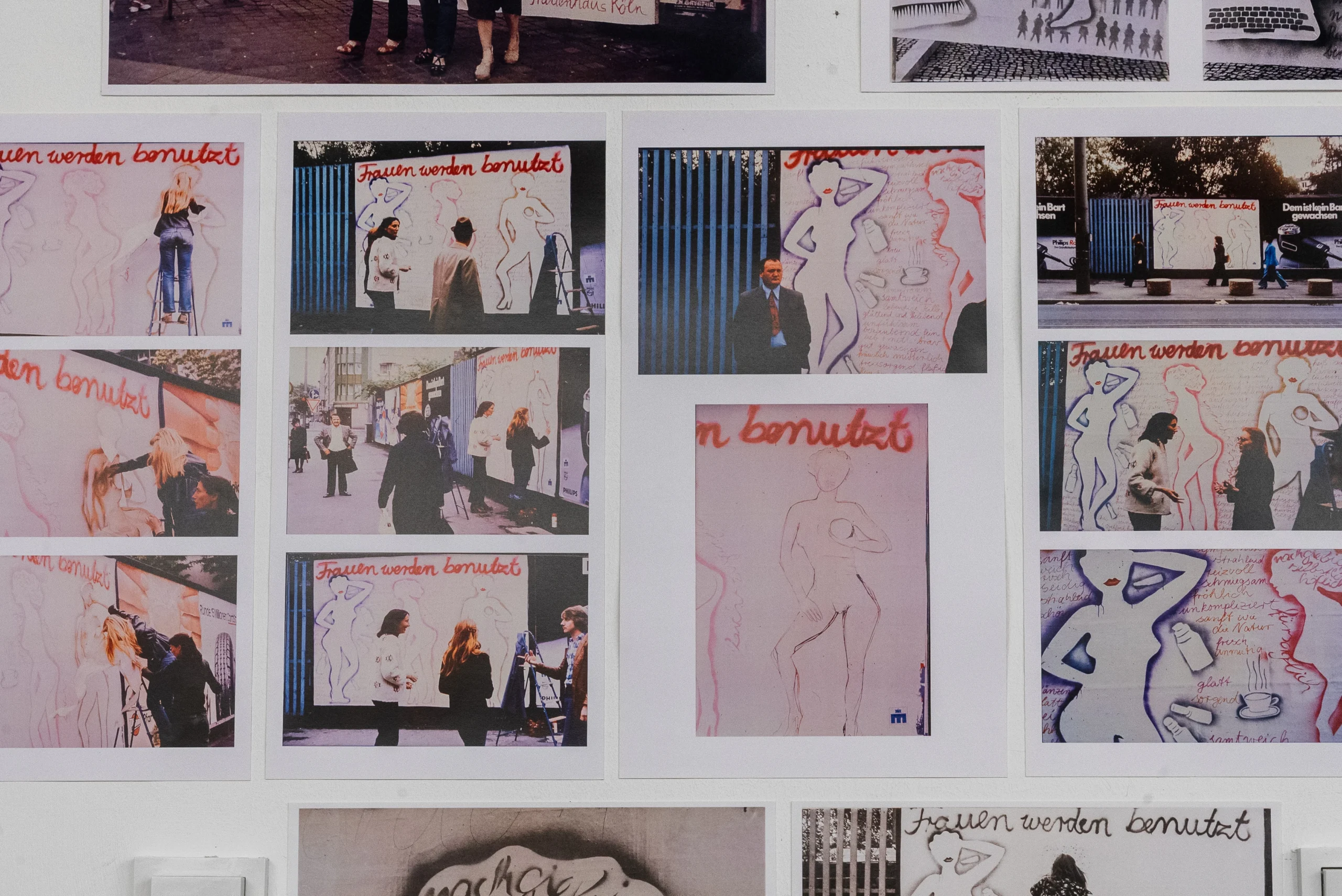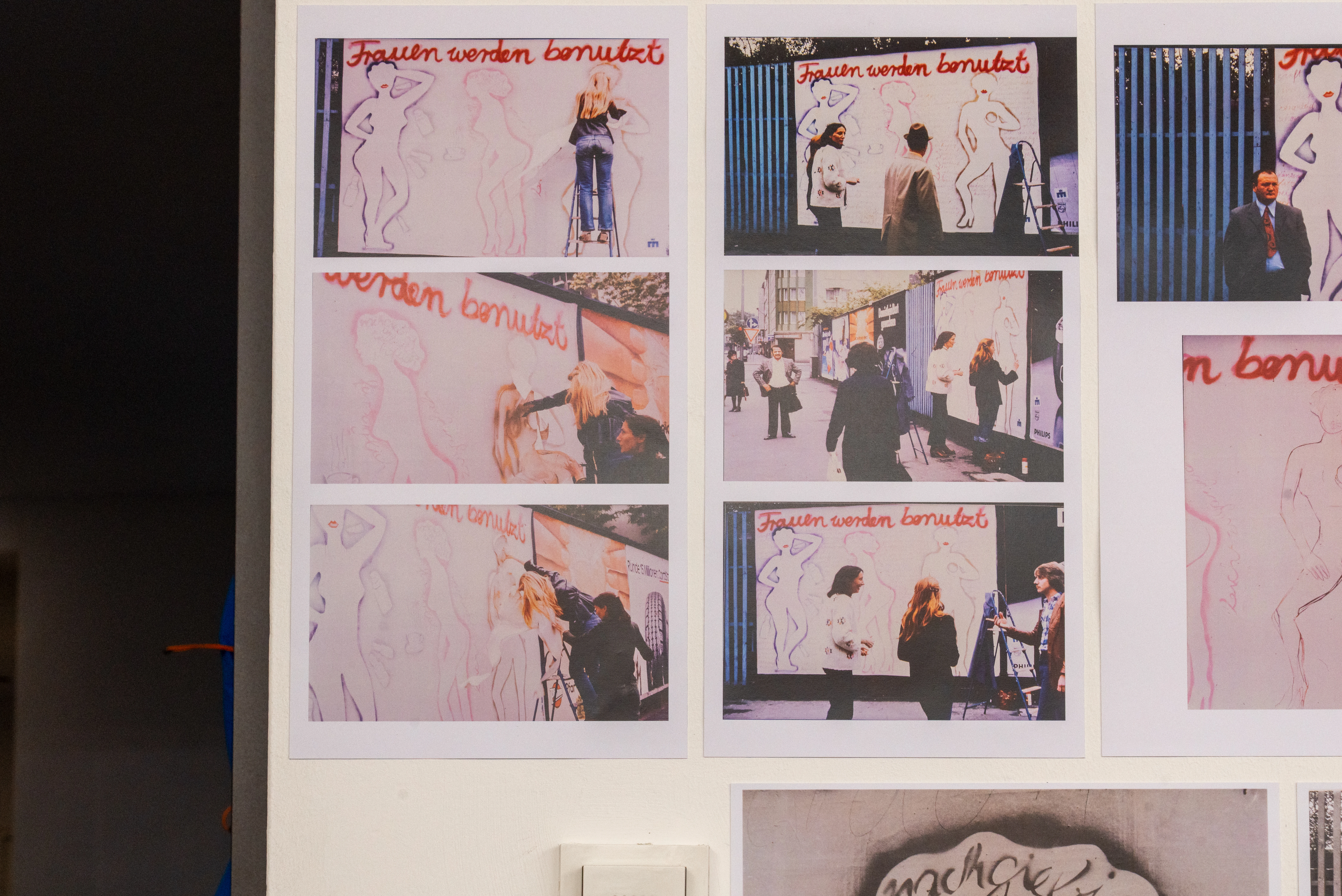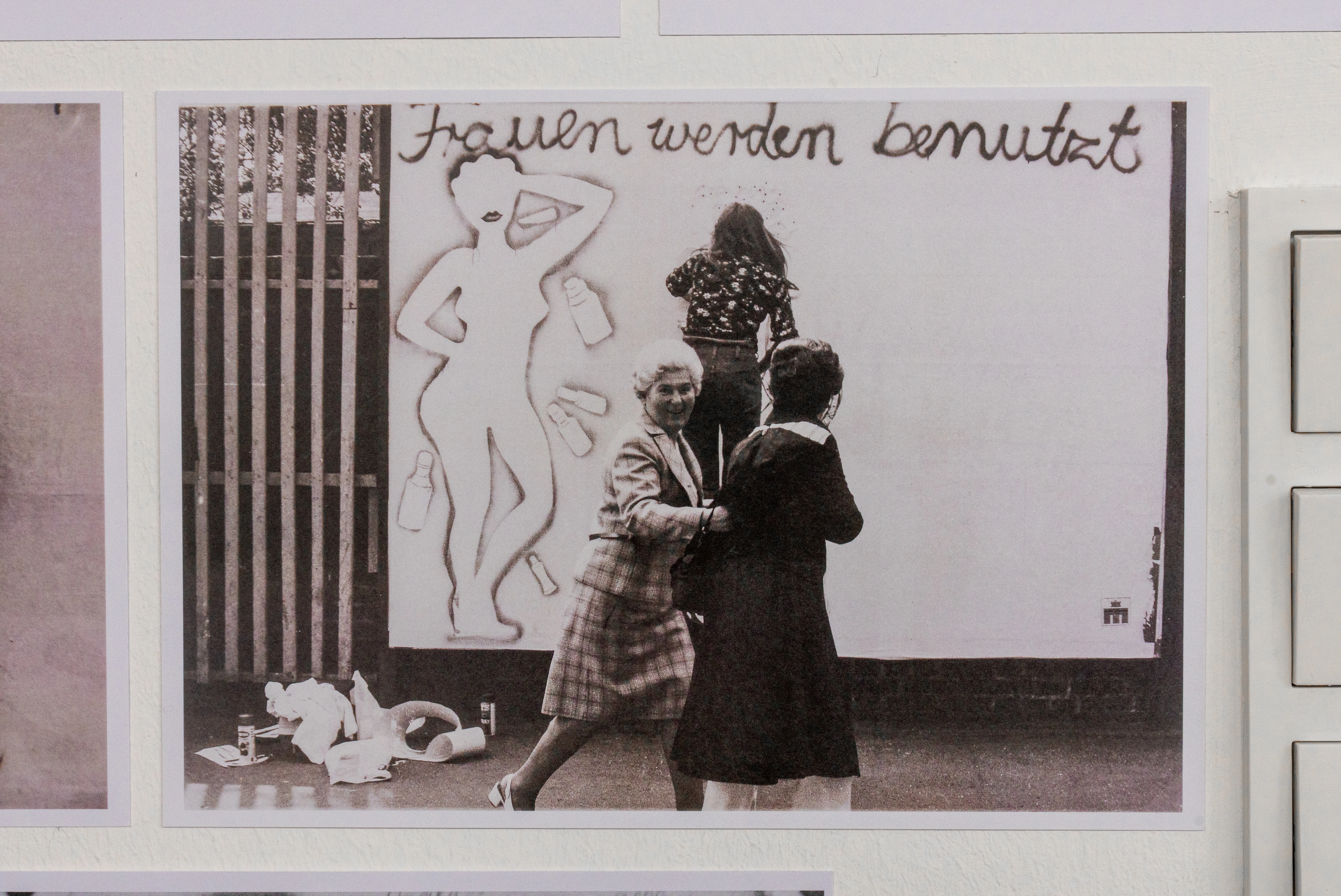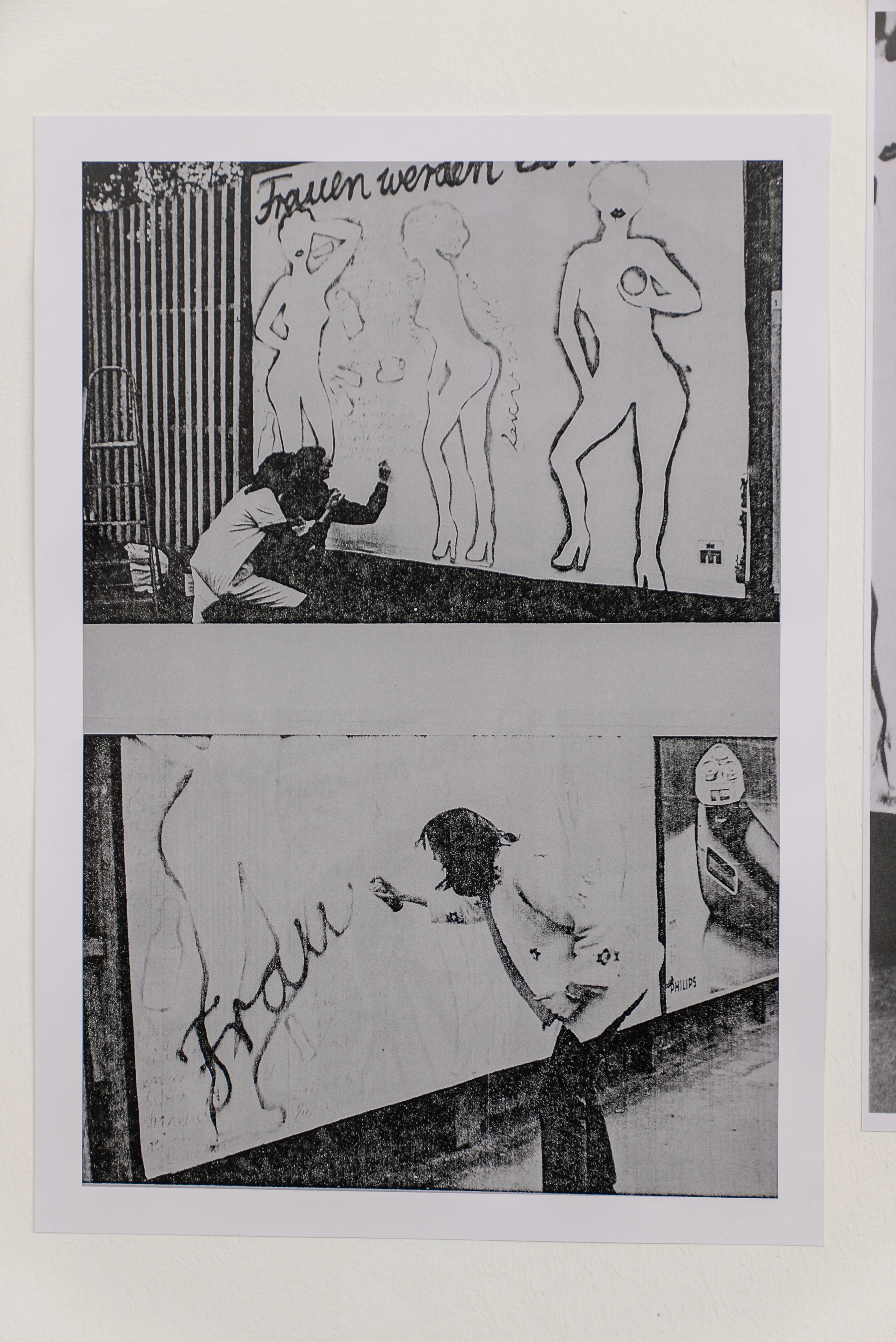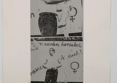 Als Abschluss eine Dokumentation der 1976 Initiative die im öffentlichen Raum das Thema ‘Frau’ zur Debatte brachte: im Rahmen der Ausstellung “Frauen machen Kunst”, 1976, Galerie Magers, Bonn, gestalteten Erinna König, Susanne Ebert, Maria Fisahn Plakatwände in Düsseldorf, Frankfurt und Berlin.