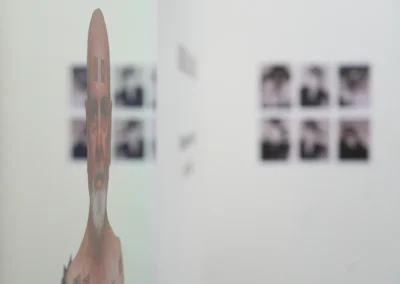 „Das Tattoo ist eine ursprüngliche Form der Kommunikation, die ich heute als künstlerisch-technologische Ausdrucksform nutze. Das Selbstporträt vermittelt meine Identität und die der heutigen Gesellschaft in der unendlichen Gegenwart des spiegelnden Bildes.“