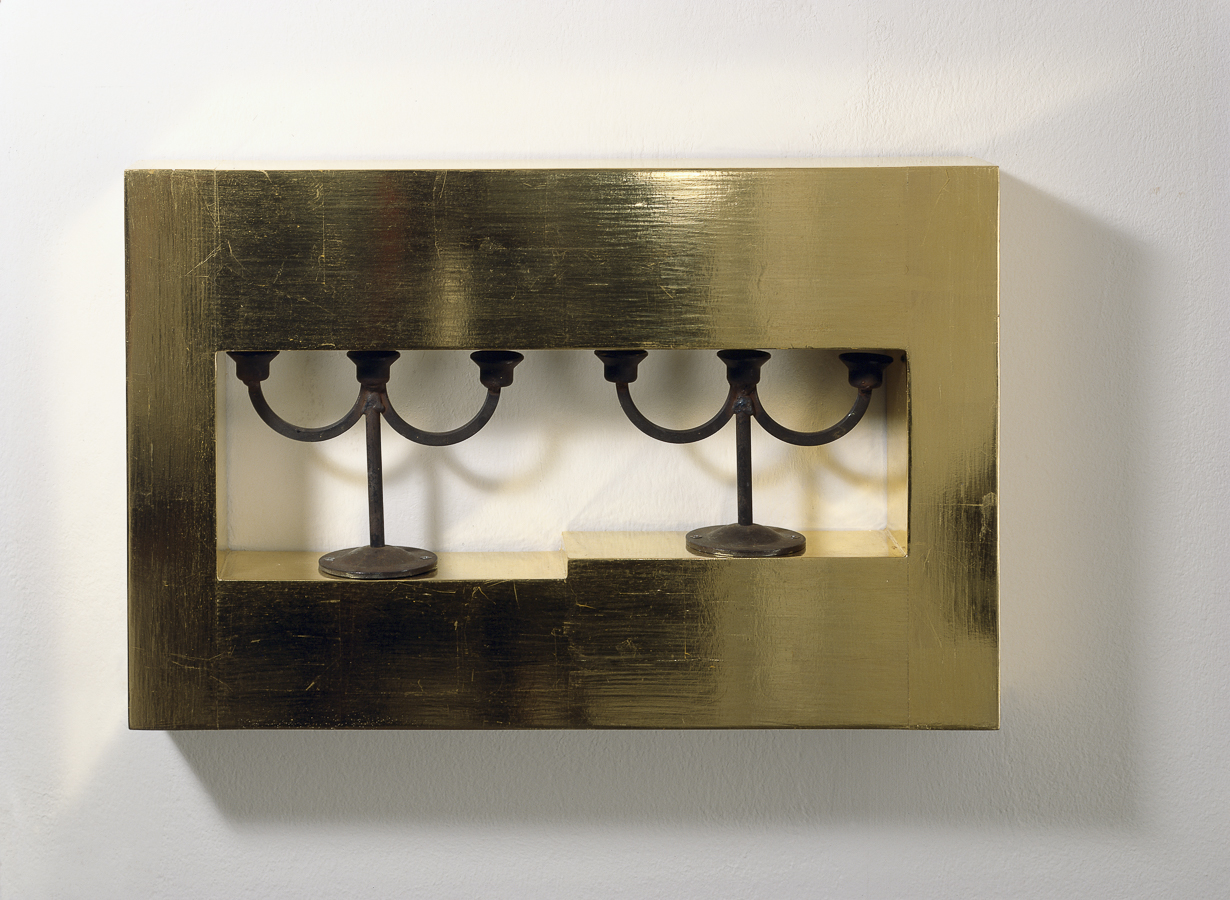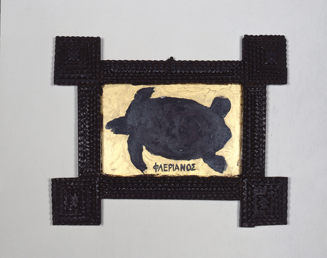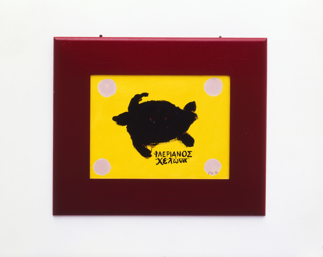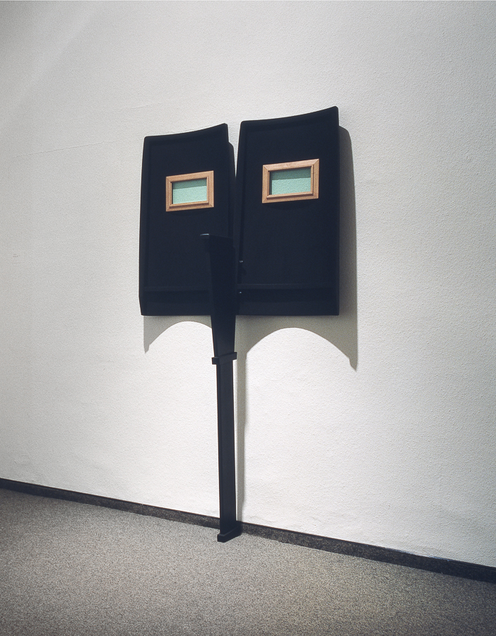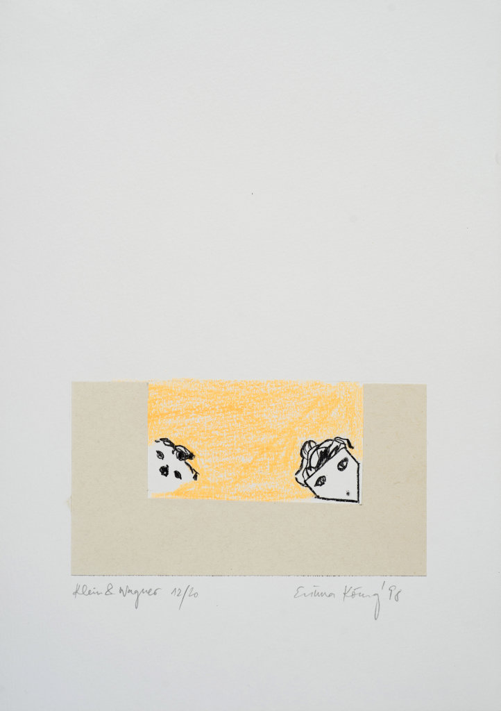 WERKE 1990 - 1999 60s 80s 90s 00s 10s 20s Rheinbild (Übergang zur Schublade)1998Acryl- und Lackfarbe auf HolzH 53,5cm x B 42cmPhoto: Nic Tenwiggenhorn Wahlurne1990Acrylfarbe auf Holz und HolzlasurH 90,5cm x B 34cmPhoto: Nic Tenwiggenhorn Köln-Nippes1990Aquarell im HolzkastenH 49cm x B 45cm x T 12cmPhoto: Nic Tenwiggenhorn Ende der Rolle 61990Multiple (original edition 20)Jeweils Linoldruck (rot) auf Pappe,gefaltetes Papier60 cm Durchm.Photo: Nic Tenwiggenhorn Kleines schwarzes Quadrat1990Holz, Acryl schwarz, EisenhäkchenH 27,8cm x B 27,8cmPhoto: Nic Tenwiggenhorn Flerianos, Goldgrund1990Acryl auf PappeH 21,2cm x B 26,2cmPhoto: Norbert Faehling Flerianos, gelb1990Acrylfarbe auf AquarellpapierH 18cm x B 24cm Photo: Norbert Faehling Machtpeter 1991 H 202 x B 102 x T 55 Goldbild 1992/1998 H 37 x B 57 x T 8 o.T. 1991 H 41,2 x B 25 Vogelbild1991Holz, Glas, AcrylH 71,5cm x B 60cmPhoto: Nic Tenwiggenhorn Happy Birthday1997Grafiks/w Postkarte mit Filzstift koloriertDIN A6Photo: Nic Tenwiggenhorn Video Stereo links/rechts1989/ 1990(2-teilig): Beize auf HartfaserH 46cm x B 35,5cmPhoto: Nic Tenwiggenhorn Editionen 1. Das Ende der Rolle1990Linoldruck auf Pappe / AcrylDiameter 60 cm Klein & Wagner1998Edition 20