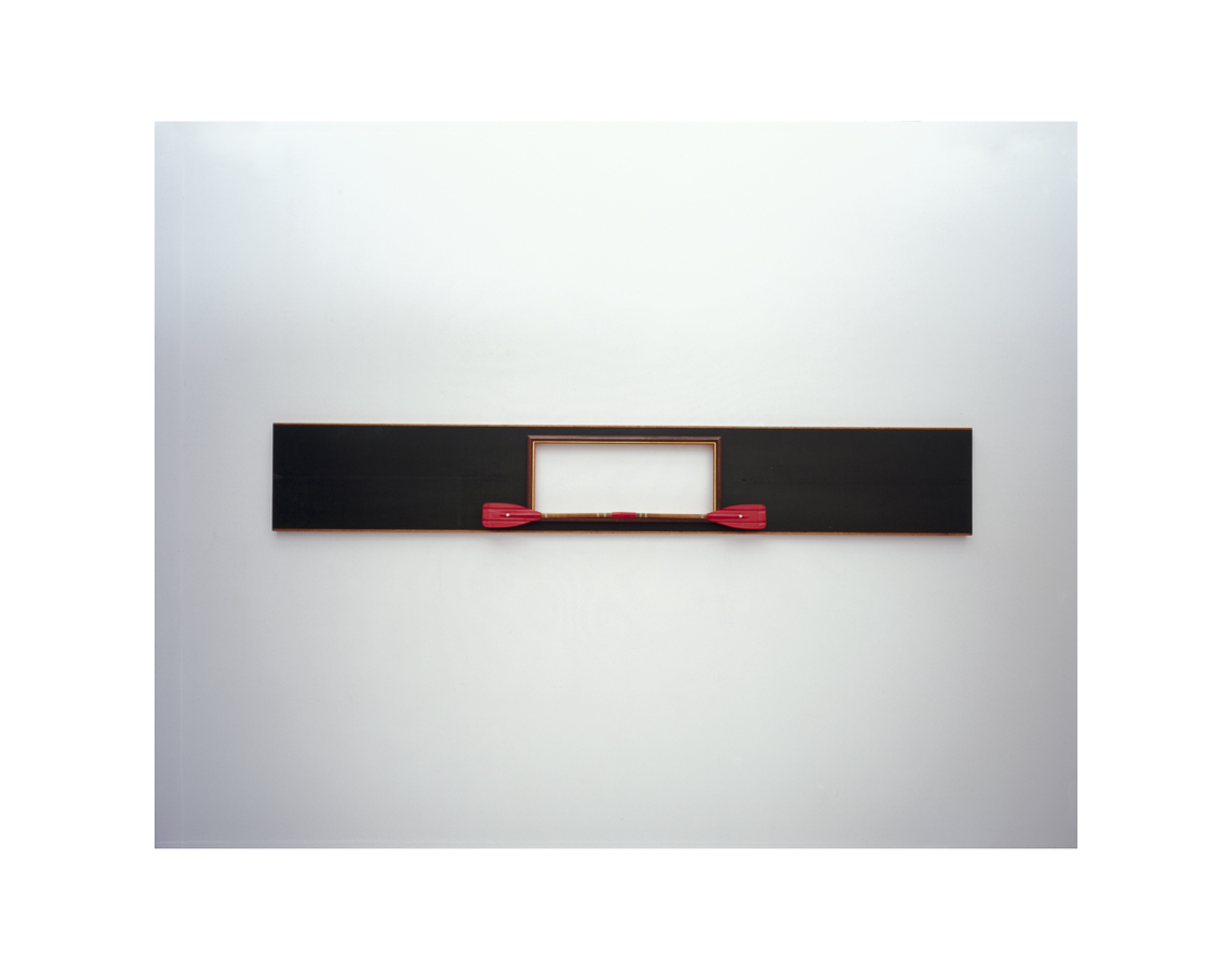 Paddel aus Holz und rotem Plastik